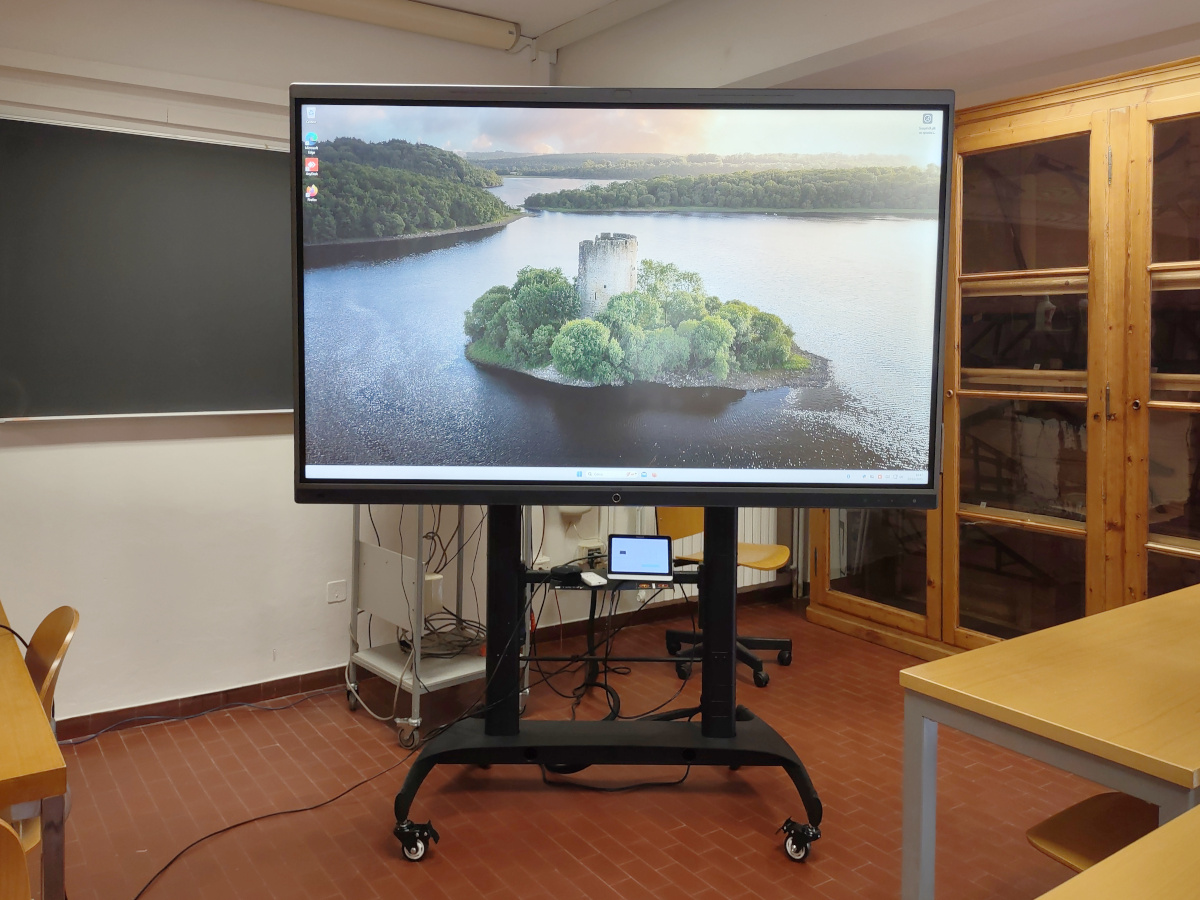 È attrezzata con una meeting board da 86 pollici e una telecamera a soffitto per meeting e per le lezioni in modalità duale.